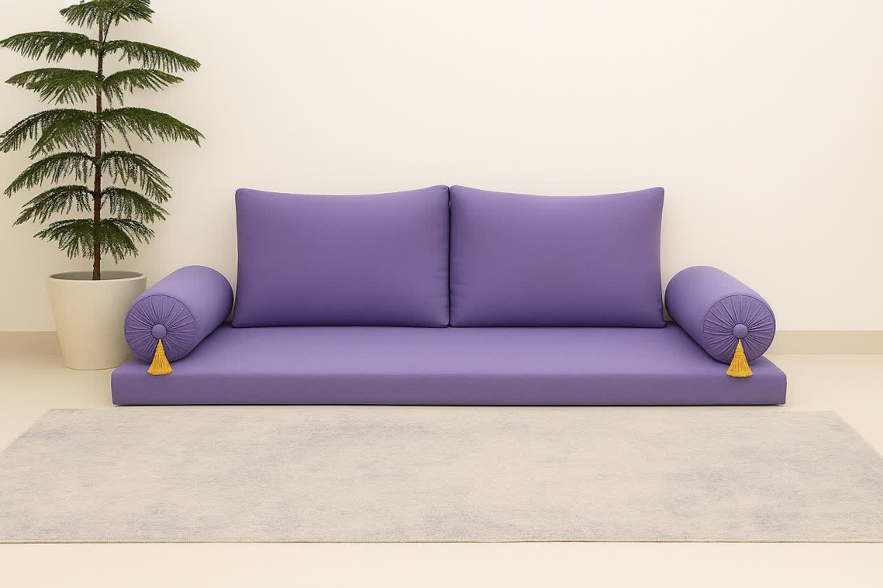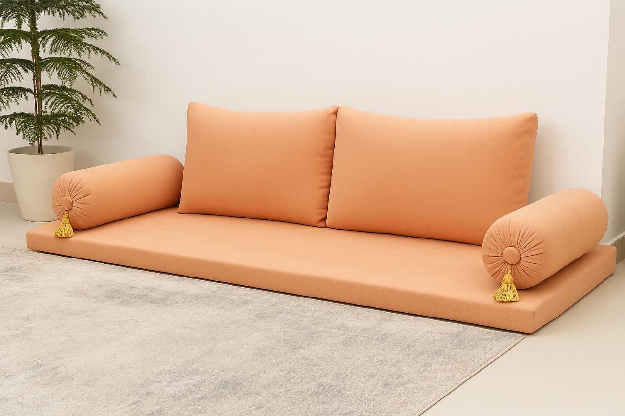 سرویس 5 تکه پشتی نشیمن مجلسی | مبل عربی زمینی شیک با کوسن استوانه